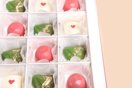 Čokoládová srdíčka s ořechy a lyofilizovanými lesními plody, 16ks