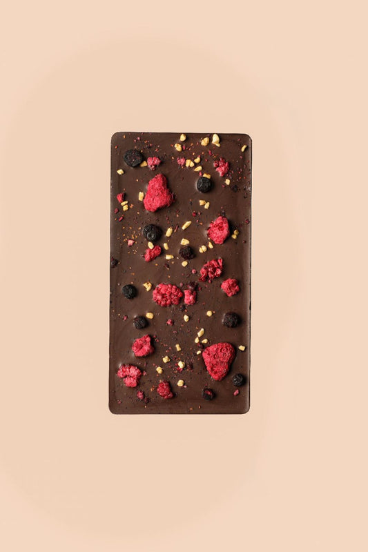 Čokoládová srdíčka s ořechy a lyofilizovanými lesními plody, 9ks